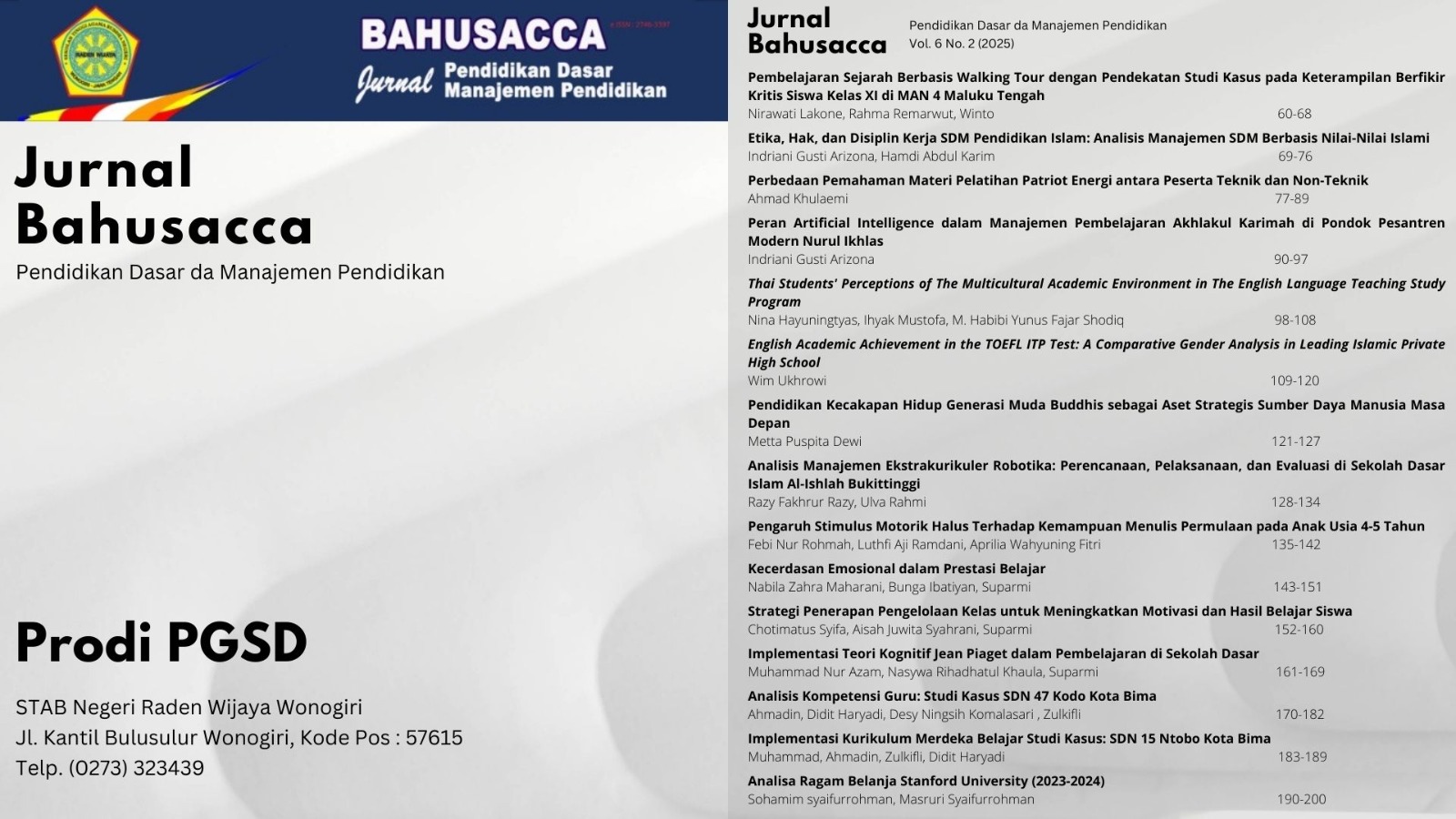 Vol. 6 No. 2 (2025): Pendidikan Dasar dan Manajemen Pendidikan